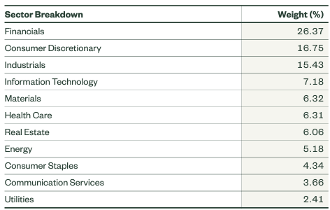 Deze ETF volgt de MSCI USA Small Cap Value Weighted index die Amerikaanse small cap bedrijven in de portefeuille heeft gewogen op basis van verkoop, winst, cash en boekwaarde.