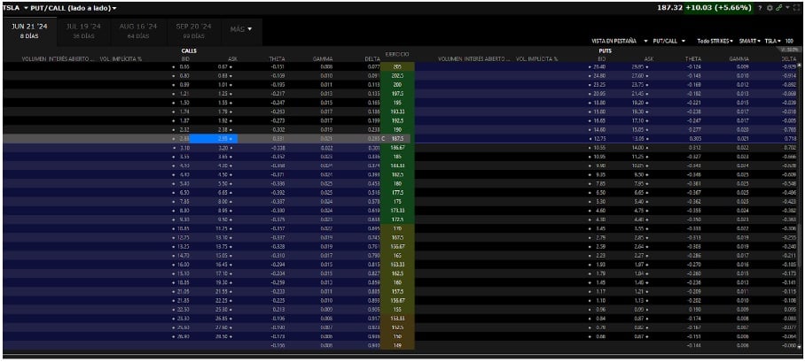 Stel dat je de aandelen van TSLA tegen de huidige prijs wilt kopen, maar je hebt nu niet genoeg geld, wanneer je baas je salaris betaalt, heb je dat geld om ze te kopen. Het probleem is dat je denkt dat ze tegen die tijd al veel gestegen zullen zijn, en die prijs zal dan niet meer zo aantrekkelijk voor je zijn. Nou, door de CALL-optie te kopen, betaal je om de prijs te verzekeren, maar onthoud dat je later ook de aandelen moet betalen, en daarom moet je bij de prijs van de aandelen ook het bedrag optellen dat je hebt betaald om die prijs te verzekeren.