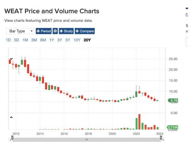 Niettemin, wat vooral opvalt in de Amerikaanse tarwe-ETF is het Teucrium Wheat Fund.