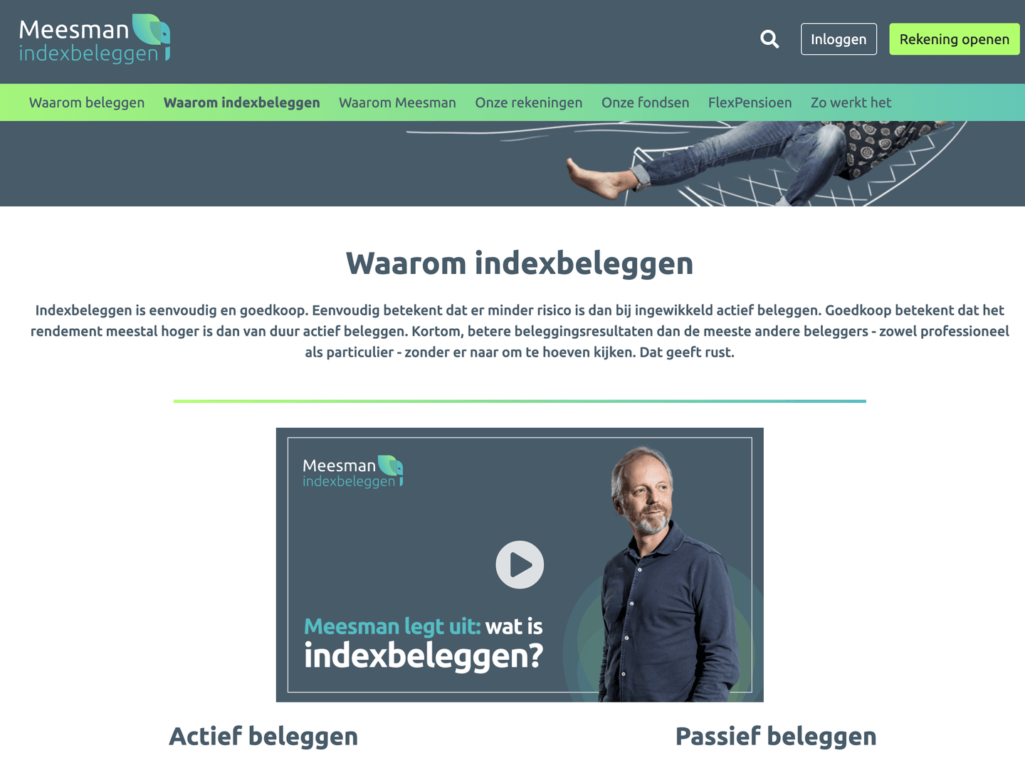 Meesman is in Nederland een bekende naam geworden als het gaat om passief beleggen in indexfondsen. Door de focus op lage kosten kan het uiteindelijke rendement voor beleggers aanzienlijk hoger uitvallen dan bij traditionele beleggingsfondsen. Verschillen in kosten lijken misschien klein, maar over een periode van tientallen jaren kan dit oplopen tot een veelvoud aan extra rendement.