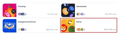 De volgende stap is het vinden van de munt die we willen kopen; hiervoor moeten we de naam of ticker invoeren in de sectie "Andere munten zoeken" (rechtsonder in de volgende afbeelding):