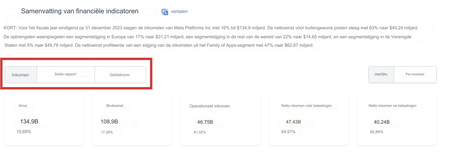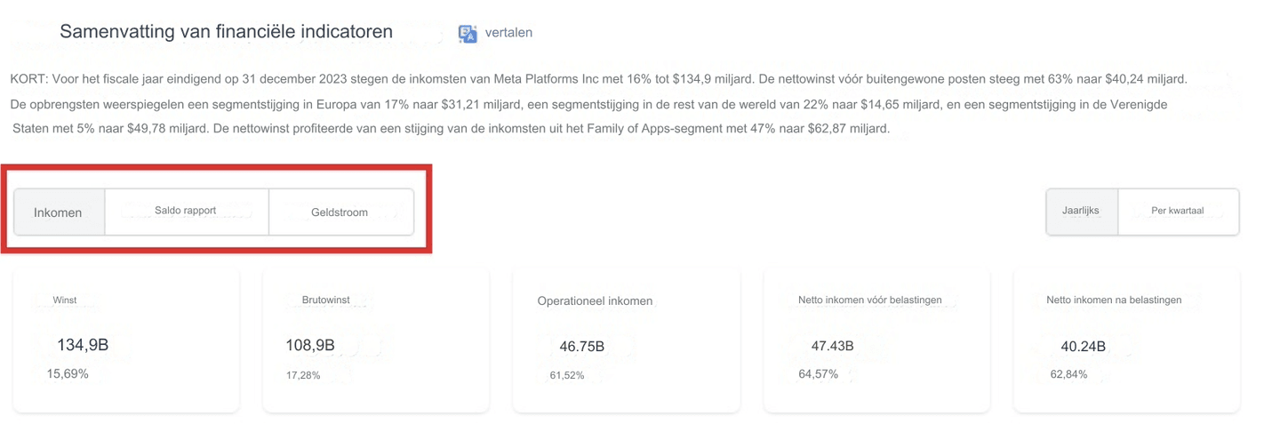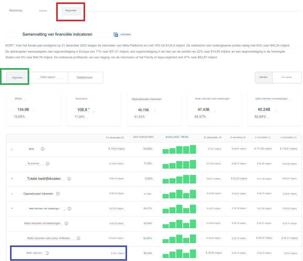 Om te zien hoe deze berekening praktisch wordt uitgevoerd, gaan we dit doen met de resultaten van Meta Platforms van 2023.