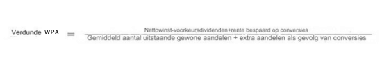 Dit omvat opties op aandelen, warrants, converteerbare aandelen en andere soorten converteerbare effecten. De verdunning toont het "slechtst mogelijke scenario", ervan uitgaande dat alle converteerbare effecten worden omgezet in gewone aandelen. De formule voor de verwaterde WPA is: